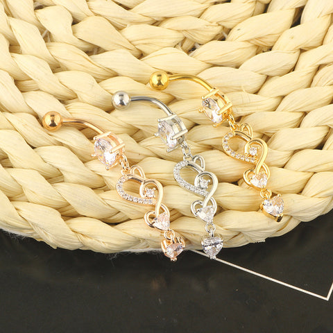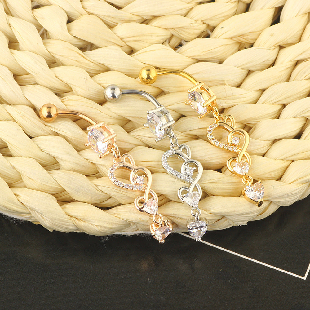 Double Heart Long Zircon Belly Button Ring Belly Button Nail Piercing Ornament