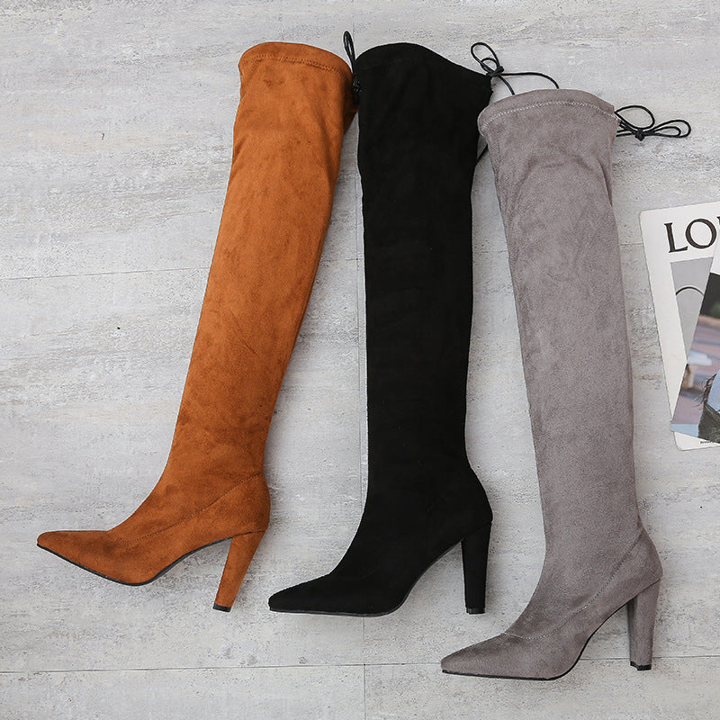 Stretch Boots With High Heels And Pointed Toe Over The Knee