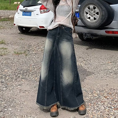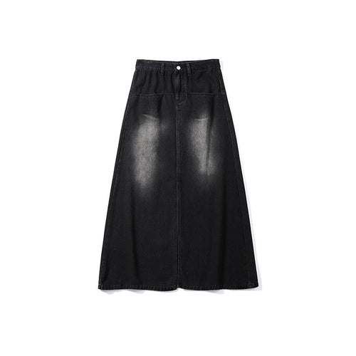 Washed Denim Long Skirts Stitching Design Women's Clothing