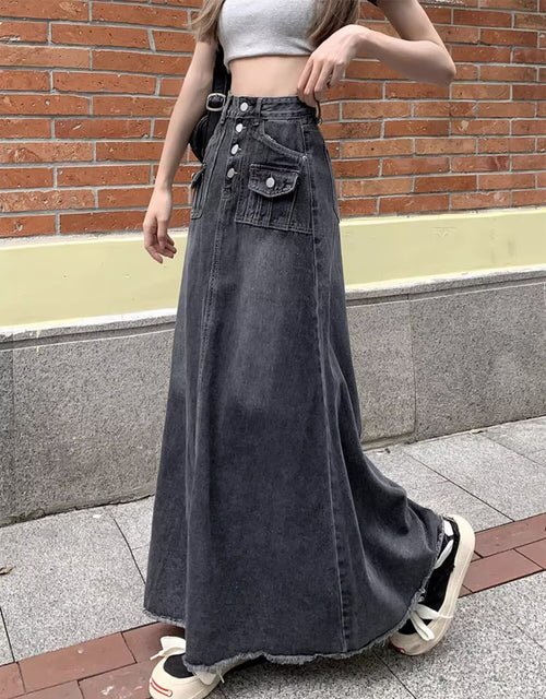 Autumn High Waist Retro Straight Loose Long Denim Skirt For Women