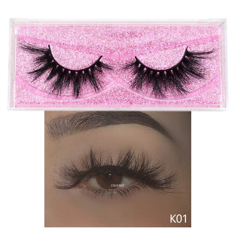 زوج واحد من الرموش مع علبة لامعة باللون الوردي
