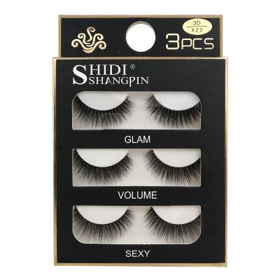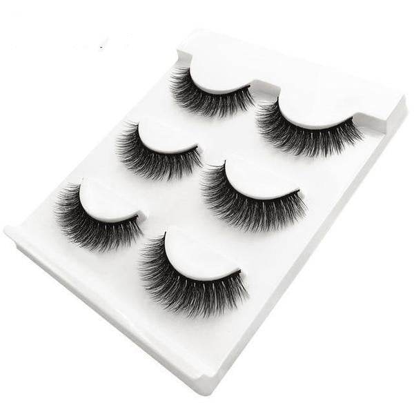 رموش منك ثلاثية الأبعاد 3 أزواج من الرموش الصناعية الطويلة المصنوعة من الألياف الطبيعية