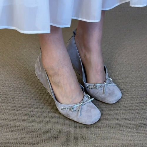 Women's Low-cut Bow Pumps Flat Bottom