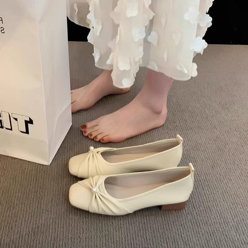 حذاء خريفي نسائي منخفض القطع بمقدمة مربعة وكعب سميك