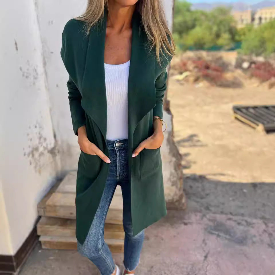 Fall And Winter Lapels Mid-length Knitted Cardigan Thin Woolen Coat