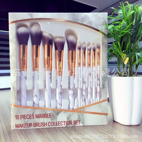 بيع المصنع مباشرة فرشاة ماكياج نمط الرخام 10 فرشاة ماكياج كبيرة صغيرة أداة ماكياج الجمال حقيبة فرشاة ماكياج