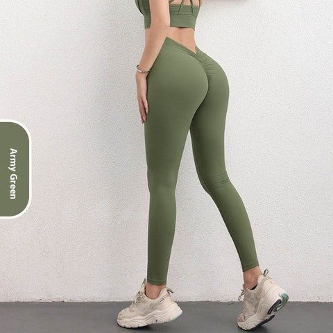 بنطلون يوغا عصري على شكل حرف V، بنطلون بخصر مرتفع، بنطلون رياضي لرفع الورك، ملابس نسائية