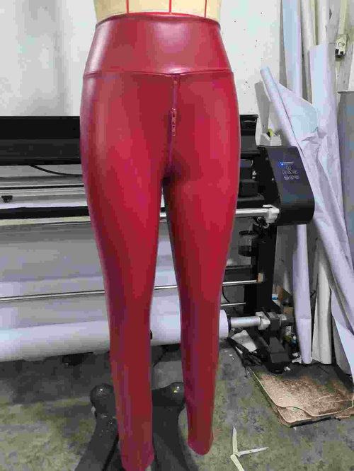 Leather Stitching Tight Flared Pants