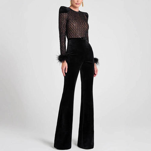 Pleuche Patchwork Long Sleeve Jumpsuit
