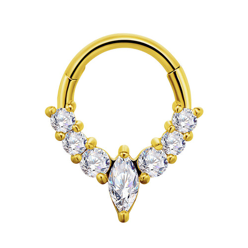 Brass-set Zircon Non-porous Piercing Clip Nose Ring