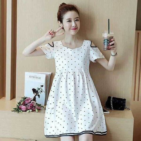 تنورة الأمومة 2020 صيف جديد الموضة الكورية نقطة موجة فضفاضة قصيرة الأكمام بدون حمالات فستان الأمومة متوسط الطول