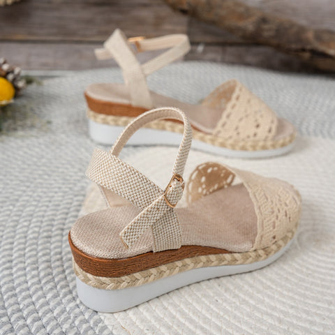 Closed Toe Back Empty Hollow-out Wedge Thick Bottom With Plus Size Casual Breathable All-match Roman Style