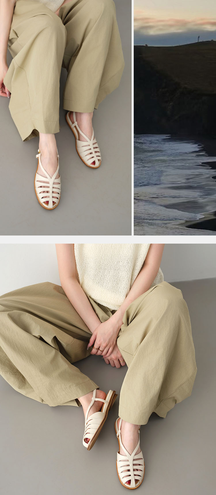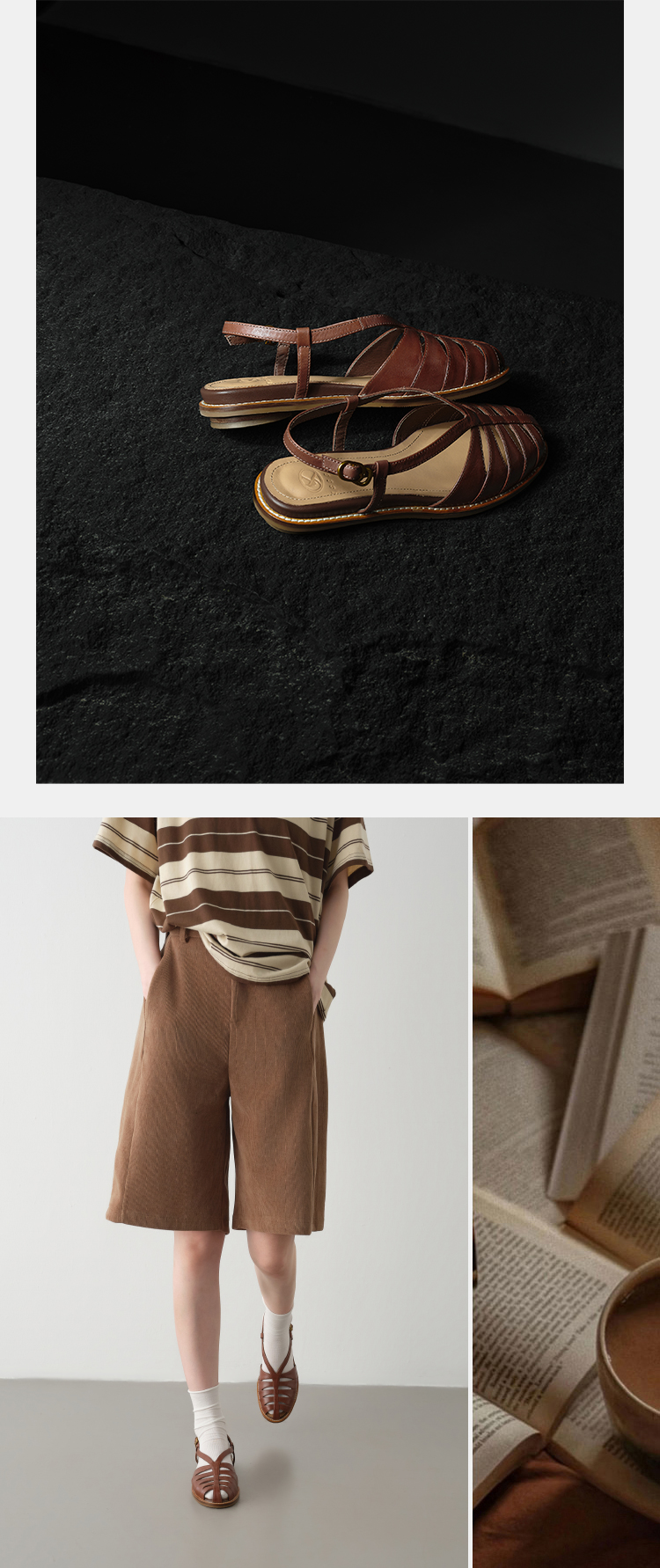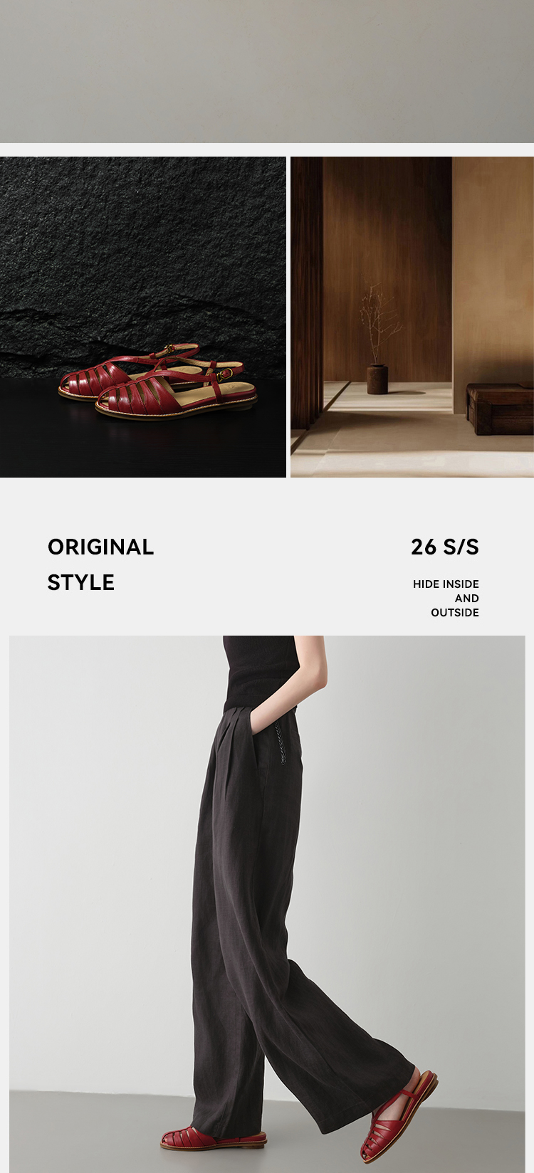 Available in classic red, white, and brown tones, these retro sandals pair effortlessly with linen jumpsuits, jeans, dresses, and wide-leg trousers. They transition seamlessly from casual weekend wear to smart casual office outfits, embodying quiet luxury and timeless style.