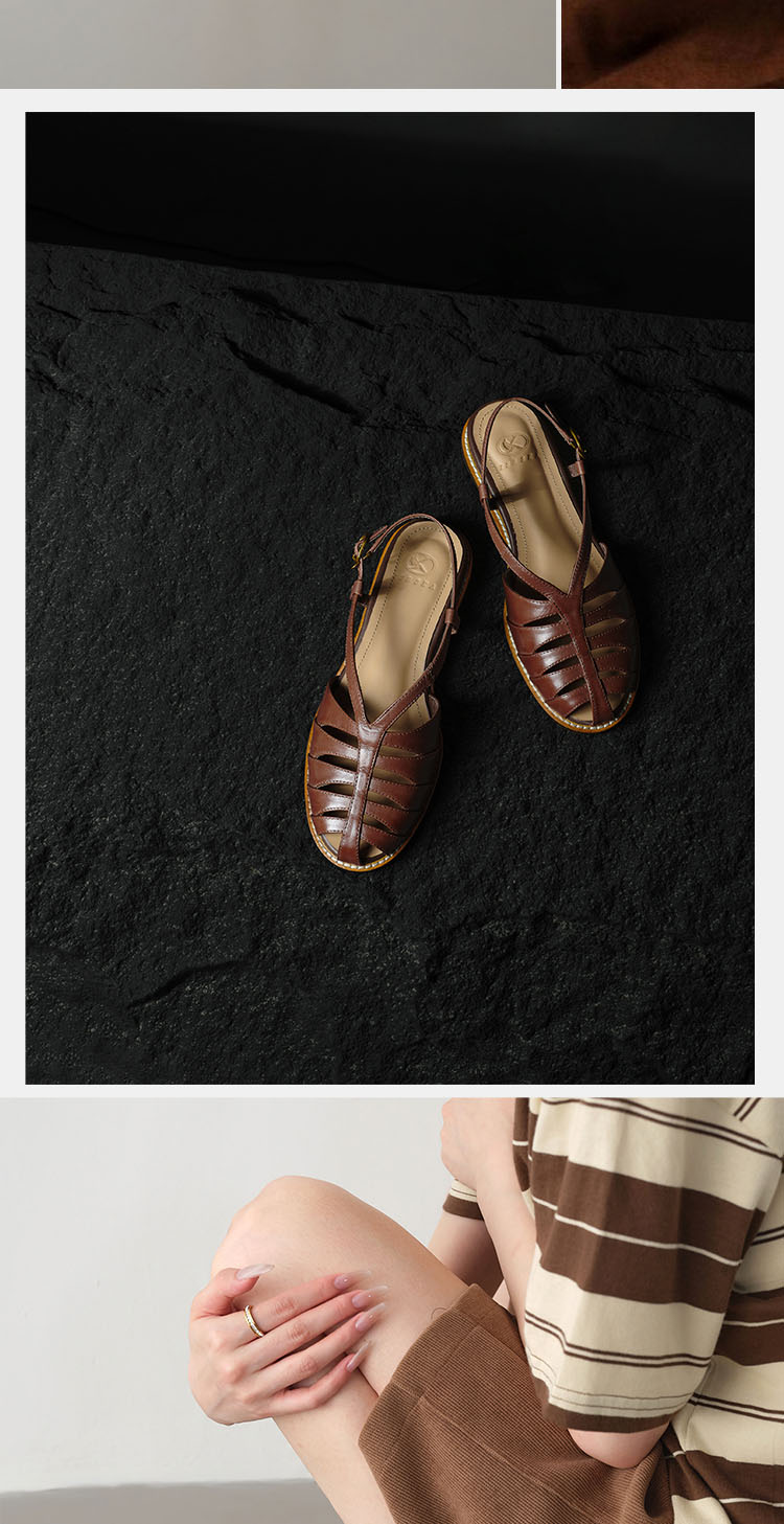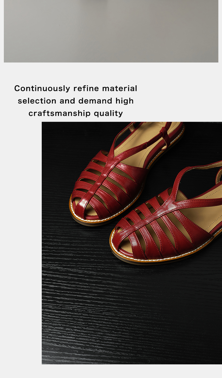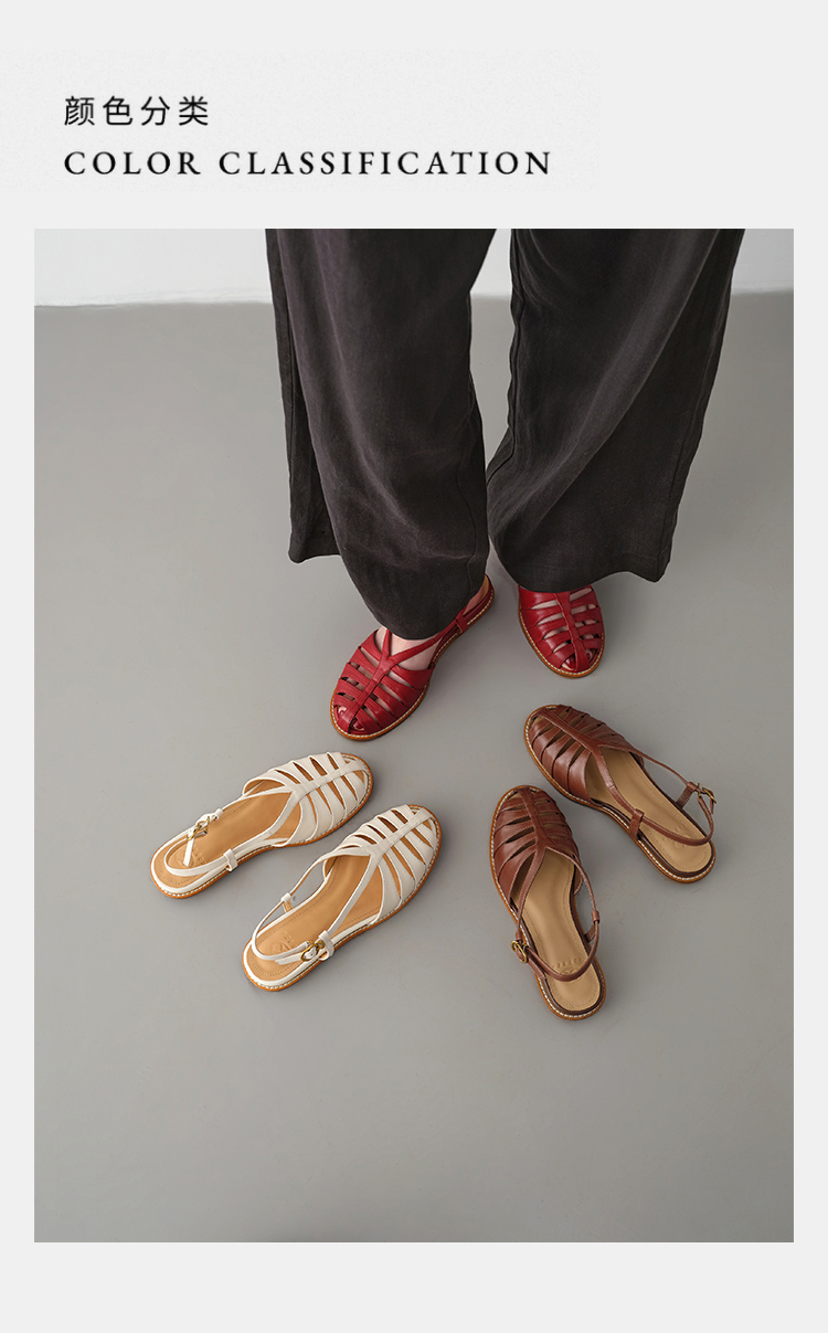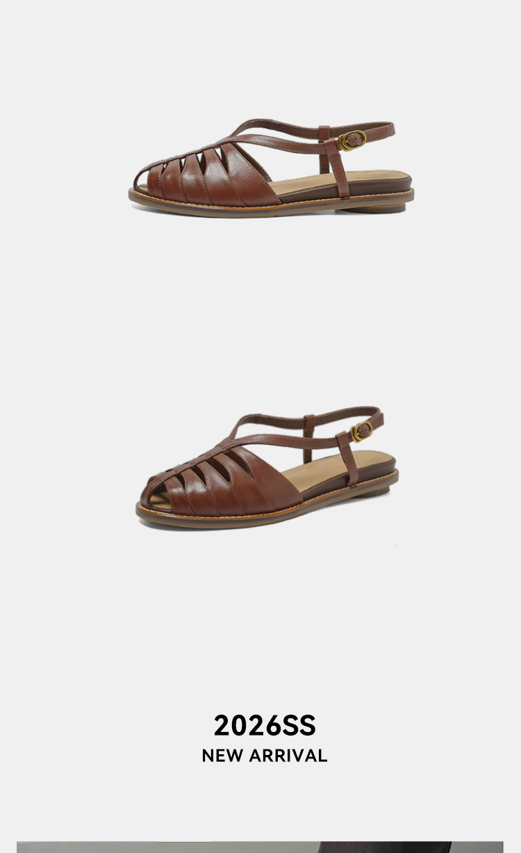 Built with reinforced stitching and a high-quality TPR rubber outsole, these sandals offer reliable grip and stability on various surfaces. The cemented construction ensures the sole stays securely attached, making them durable enough for daily wear while reducing the risk of slips.Upper Material: Full Grain Cowhide Leather Lining Material: Full Grain Pigskin Leather Outsole Material: TPR (Rubber Sole) Release Season: Summer 2026 Style: Retro Style Shaft Height: Low Top Target User: Universal Insole Material: Full Grain Cowhide Leather Type: Sandals Heel Height: Low Heel (Less Than 3cm) Heel Type: Internal Height Increasing Fashion Element: Others Shoe Making Process: Cemented Craft Occasion: Daily Wear Pattern: Solid Color Toe Style: Open Toe Back Design: Backless Side Design: Hollow Out Closure Type: Single Strap Buckle Inner Material: Full Grain Pigskin Leather Usage Scenario: Daily Vamp Material: Full Grain Cowhide Leather Origin: China Crowd: Universal Shoe Function: Breathable Production Technology: Cemented Craft Sales Channel: Offline O2O Only Applicable Season: Summer Color: Off White, Red, Brown Size: 34, 35, 36, 37, 38, 39, 40