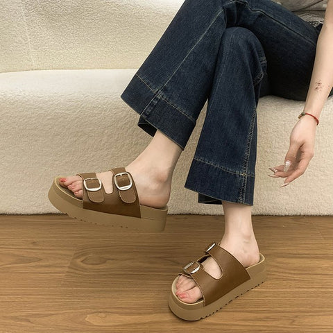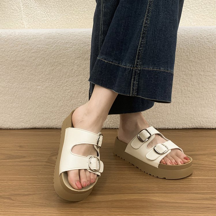 Heel Height: Mid Heel (3-5cm)Heel Type: FlatOutsole Material: RubberStyle: One-Strap BuckleUpper Material: PU