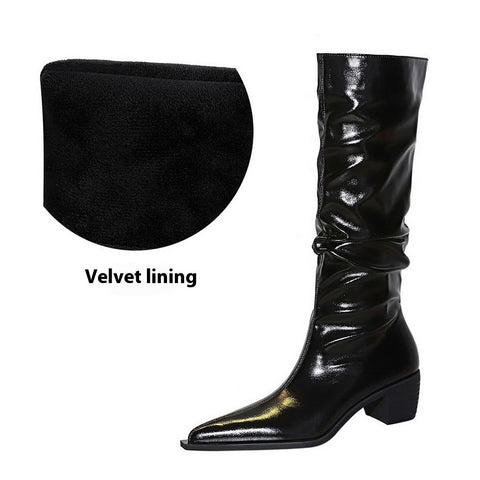 Women's Over-the-knee Boots Chunky Heel Mid Heel Pointed Wrinkled Surface