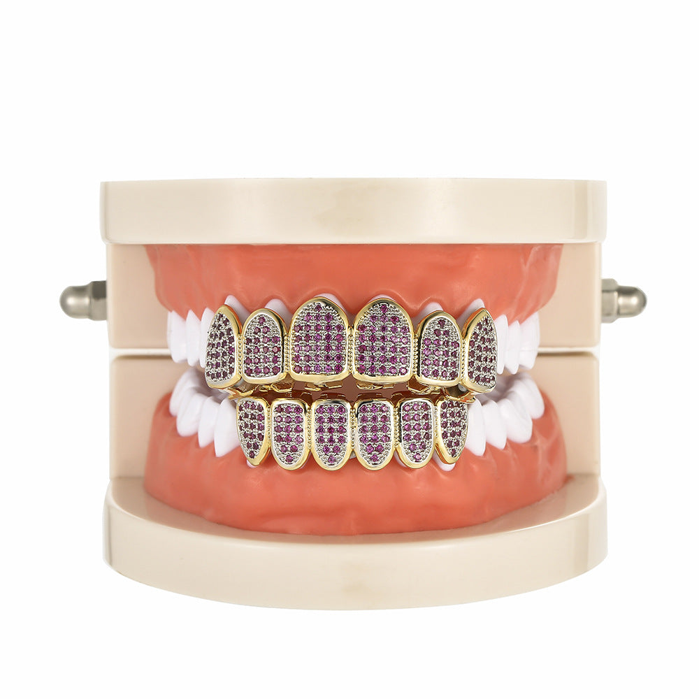 Color: Rose red zircon gold tooth socket, Rose Red upper teeth, Rose Red lower teeth