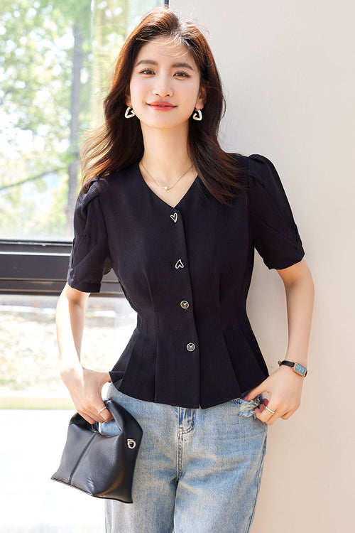 Fashion V-neck Printed Button Short Sleeve Women's Blouse
