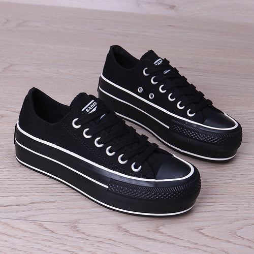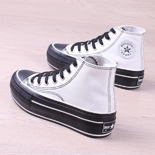 Women's Black High-Top Canvas Shoes All-Match Platform Platform