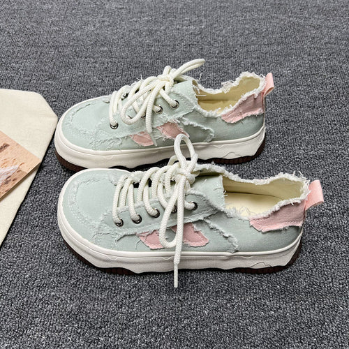 Women's Fashion Platform Casual Pure Color Tied Platform Sports Board Shoes