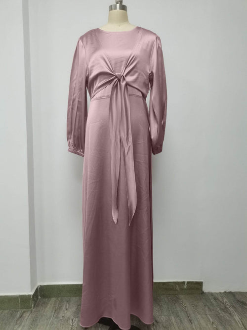 فستان نسائي مسلم أنيق من الحرير الساتان