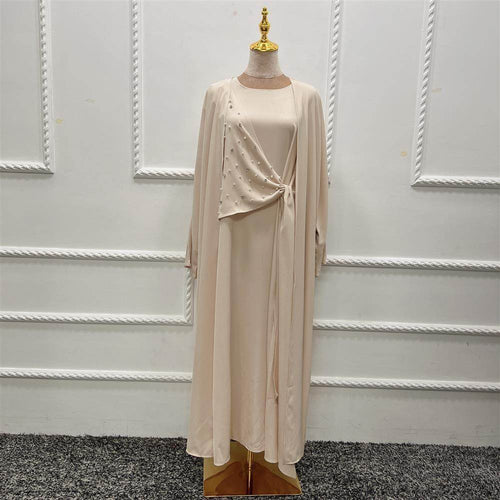 Beaded Women's Muslim Solid Color Two-piece Suit