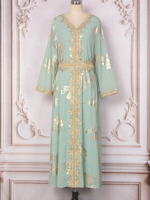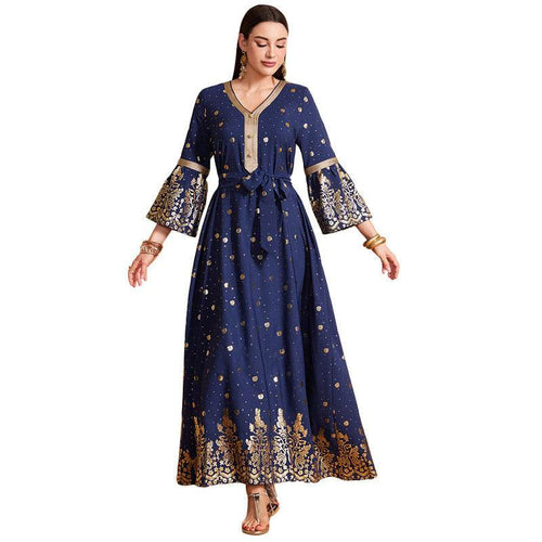 European And American Muslim Bronzing Temperament Long Sleeve Dress