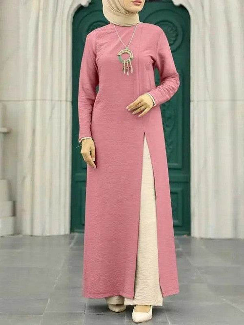 Muslim Women's Wear Ice Silk Wrinkle Long Sleeve High Slit Hem Dress
