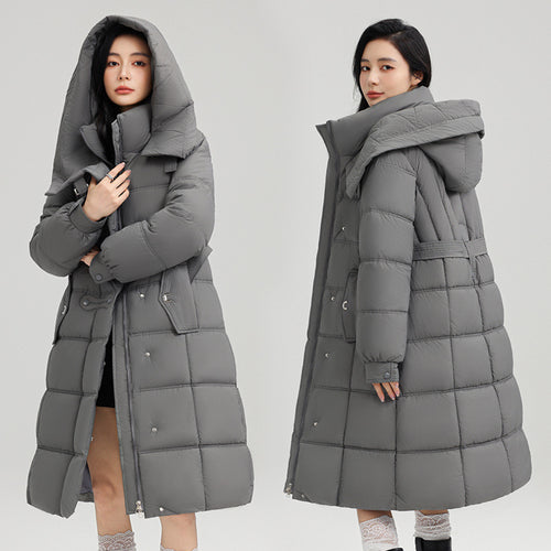 Stitching Overknee Long Slim-fit Belt Elegant Cotton-padded Jacket