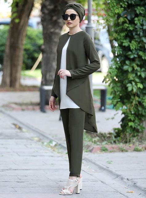 Elegant Two Pieces Silky Muslim Sets Worship Service Robe