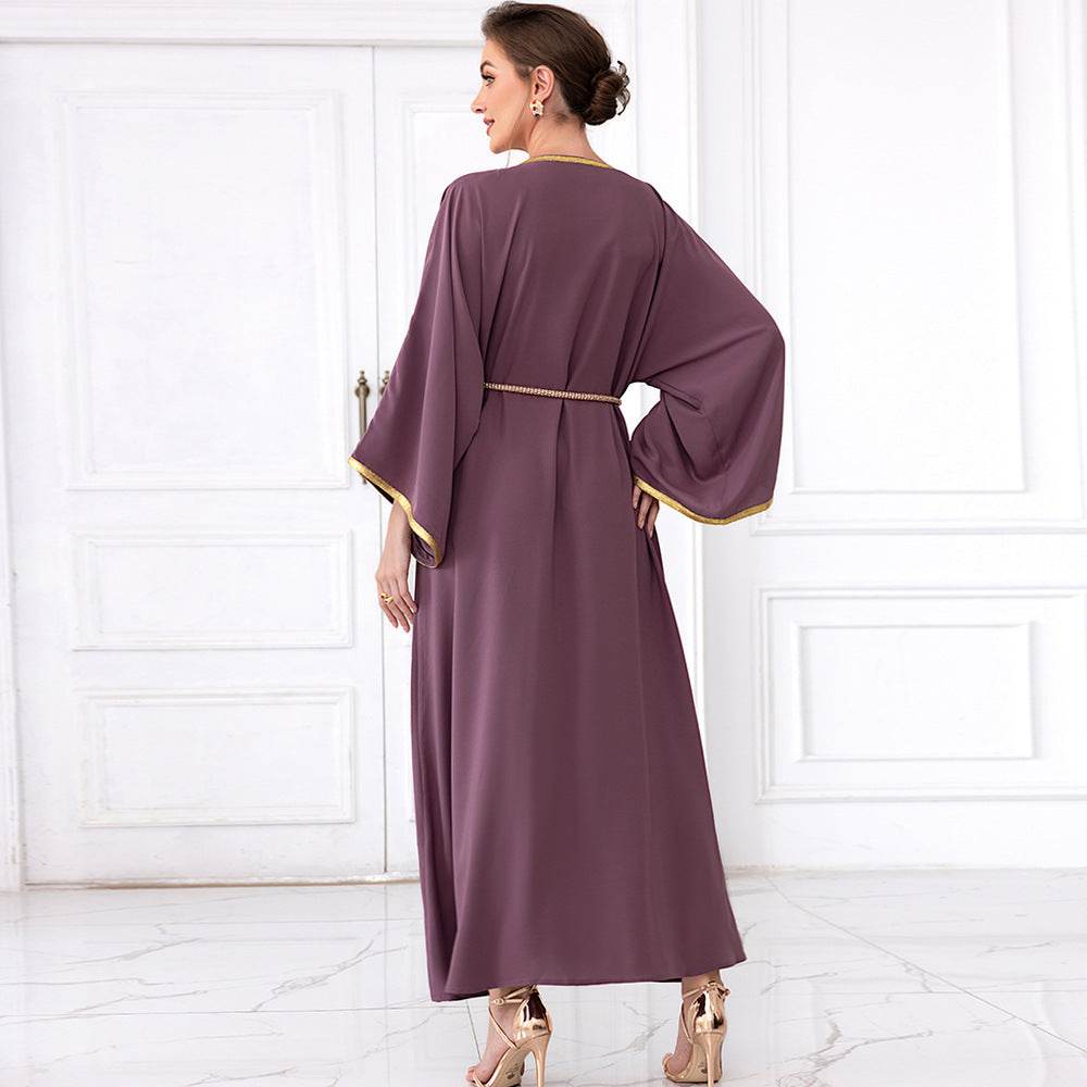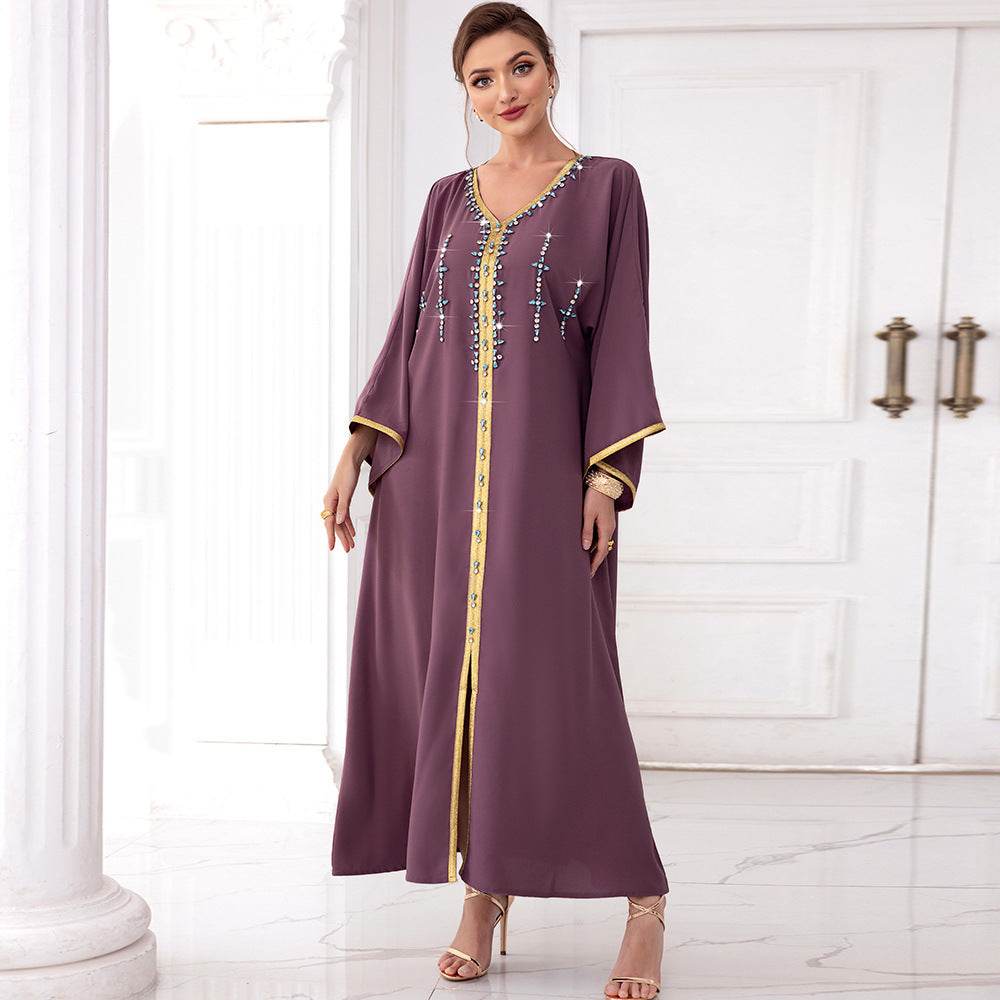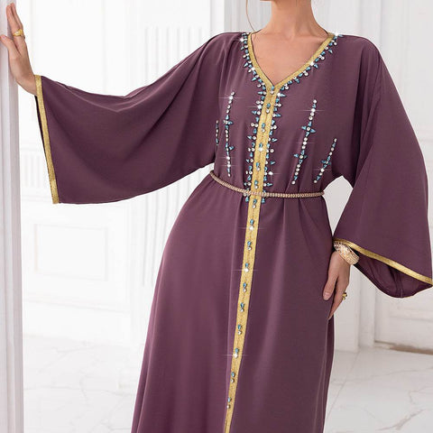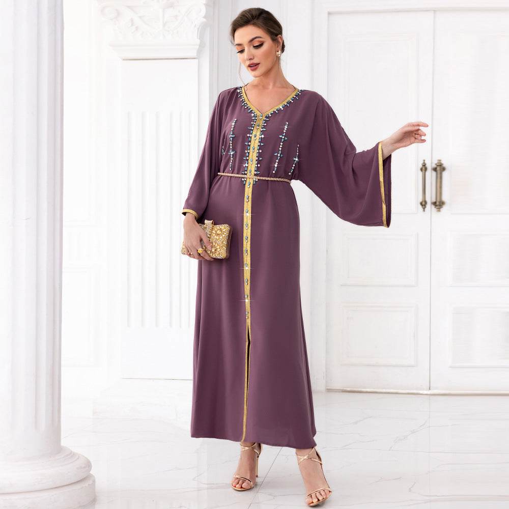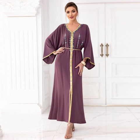 Spinach Root Color Hand-stitched Diamond Dubai Sleeve Dress