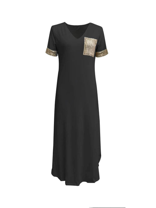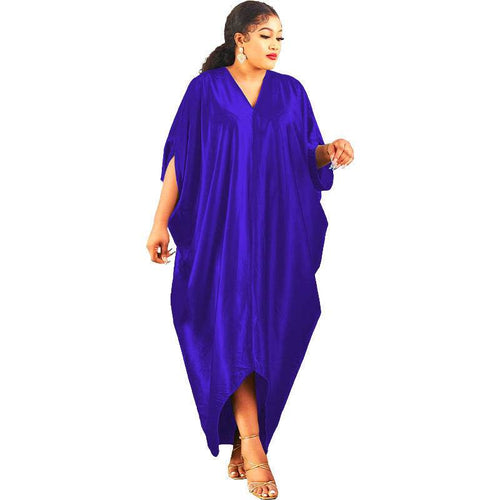 Plus Size Muslim Women's Solid Color V Neck Dress