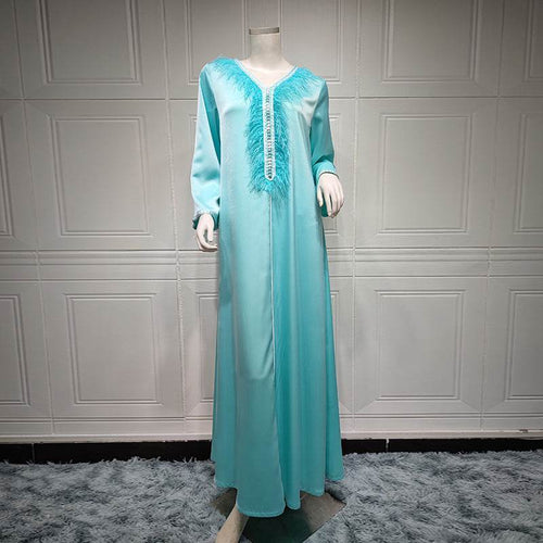 Dress Middle East Muslim Amazon Fashion Feather Patchwork Robe