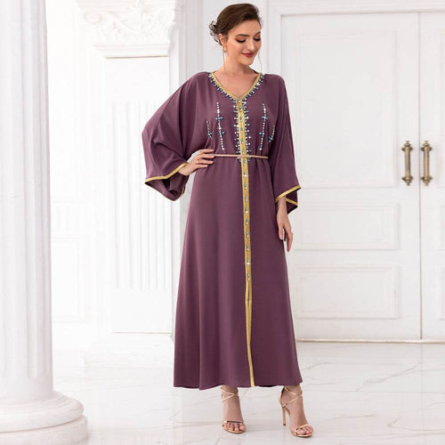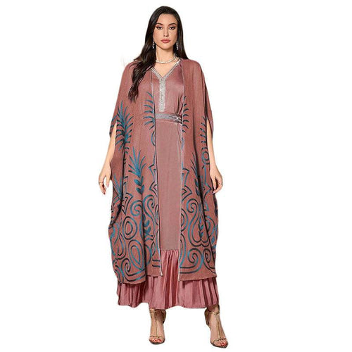 Middle East Muslim Women's Wear Sequined Gown Suit Dress Cape Robe