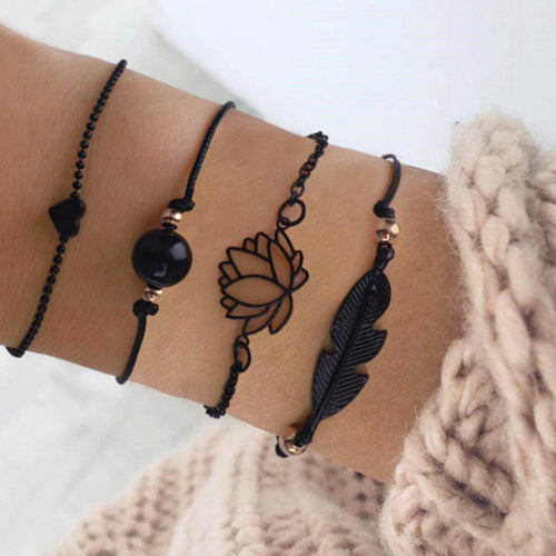 Retro Ethnic Style Lotus Leaves Love Spray Paint Bracelet Anklet