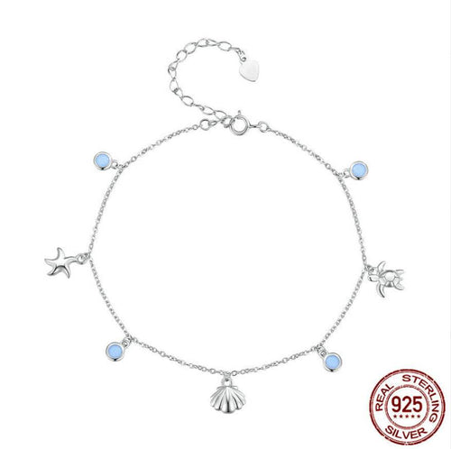 S925 Sterling Silver Beach Style Pearl Five-pointed Star Pendant Anklet