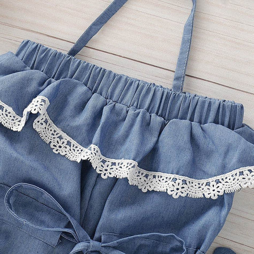 Ins Foreign Trade Platform For Cross-Border Infant Spinning Jeans Hanging Neck Jumpsuit Denim Headband Two-Piece Set