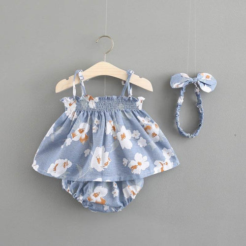 Children's Suit Girl Baby Baby Three-Piece Shorts + Headband + Dress