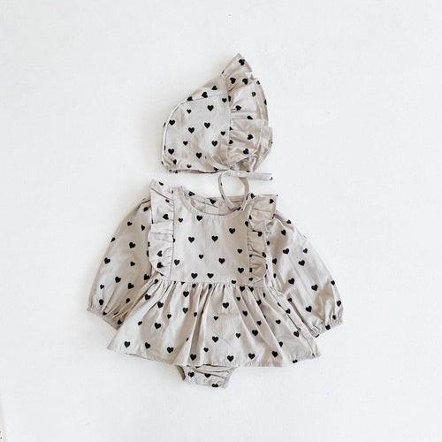 Autumn New Product Girl Baby Love Dress Long Sleeve Romper Baby Cotton One-Piece Climbing Clothes Free Hat