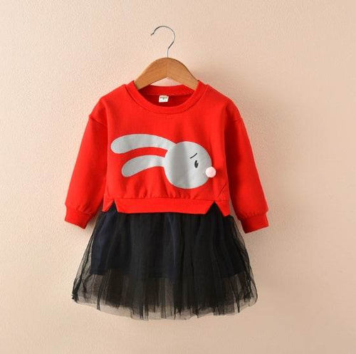 2021 autumn new Korean children's clothing, girls cute rabbit dress, baby baby princess dress 916