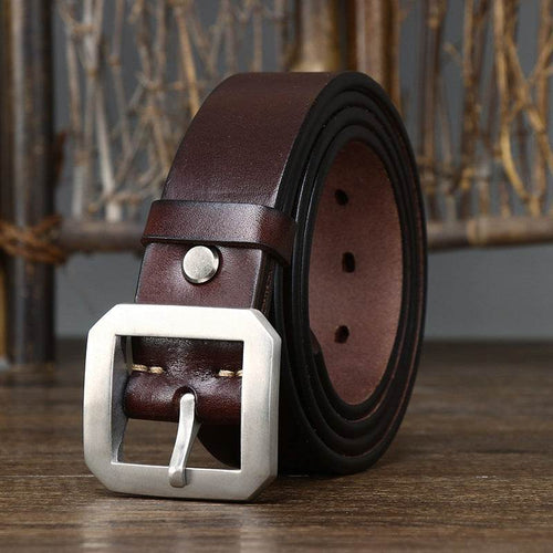 Thick Glossy Pure Cowhide Stainless Steel Belt