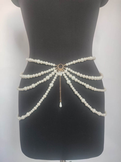 Pearl Connected Multi-layer Tassel Side Swing Waist Chain