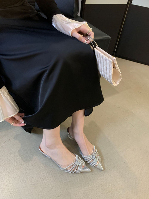 Women's Plus Size Rhinestone Pointed Toe Low Heel Shoes