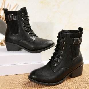 Casual All-match Plus Size Pointed Toe Chunky Heel Stitching Women's Martin Boots