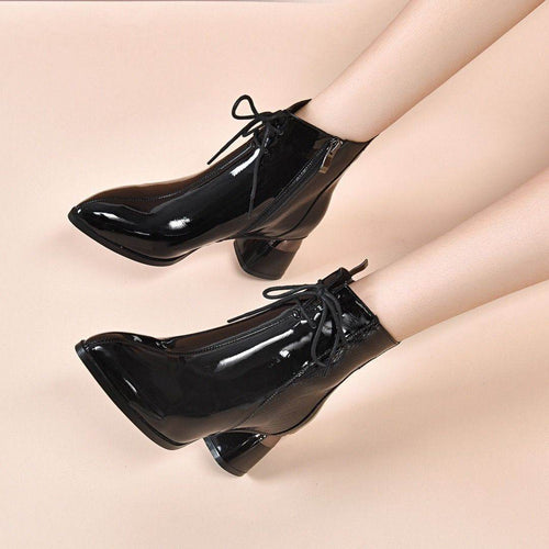 Chunky Heel Pointed Toe Mid Heel Elegant Martin Boots Patent Leather Women