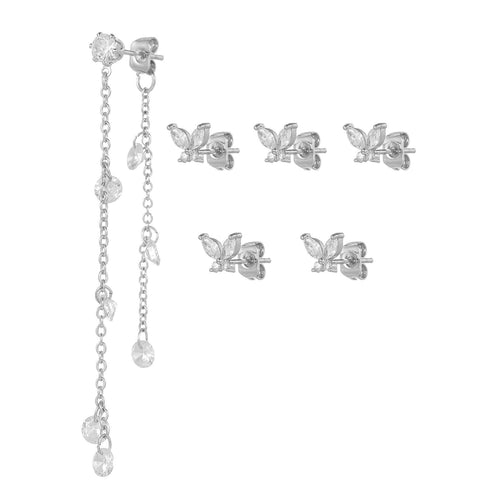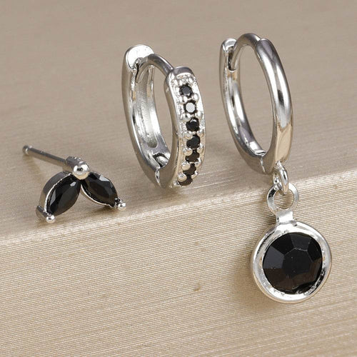 18K Real Gold Electroplated Zircon Moon Studs Three-piece Set