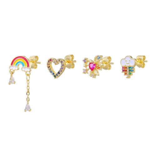 Color Painting Silver Pin Earrings Rainbow Love Suit