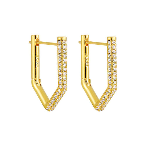 18K Gold Double D Ring Micro Inlaid Zircon Bends And Hitches Stud Earrings