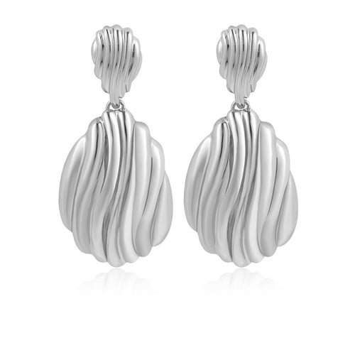 European And American Wind Net Red Brass Striped Shell Thread Pleated Ear Studs