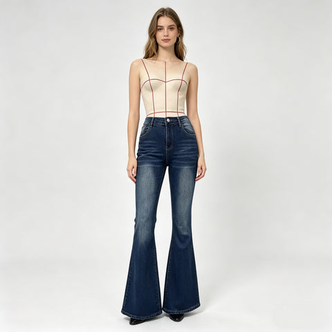 Women's Flared Jeans With Back Pocket Bow & Rhinestone Detail